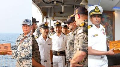 भारतीय नौसेना का अंतरराष्ट्रीय अभ्यास, तीन देशों के जहाज पहुंचे