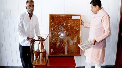 मुख्यमंत्री डॉ. यादव से काष्ठ मूर्ति कलाकार विश्वकर्मा ने की सौजन्य भेंट
