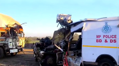 सागर में दर्दनाक सड़क दुर्घटना, कंटेनर और पुलिस वाहन की भिड़ंत में चार जवान शहीद