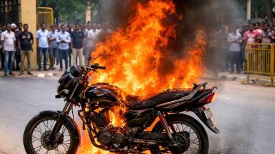 कोर्ट परिसर के नजदीक बाइक में लगी आग, चालक ने कूदकर बचाई जान
