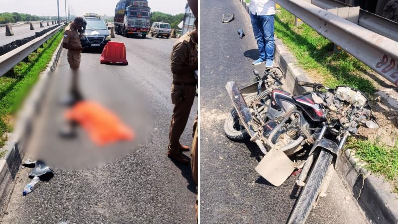 टक्कर के बाद उछलकर दूर जा गिरा युवक, मौके पर मची अफरा-तफरी