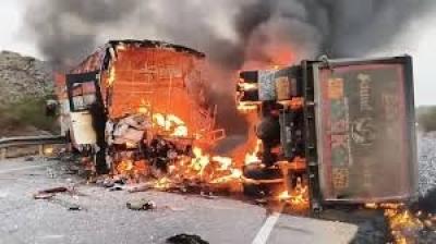 बस-ट्रक टकराने से आग, 13 लोग जिंदा जले; कई घायल