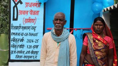 पक्के घर का सपना हुआ साकार, पीढ़ियों का ’कच्चा मकान’ छोड़ अब पक्के आवास में मुस्कुरा रहा है सुखराम का परिवार